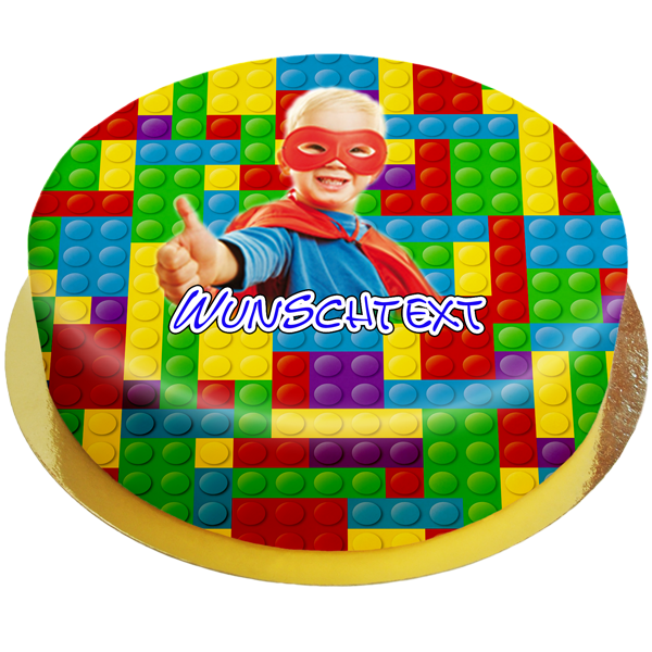 Fototorte mit bunten Bausteinen-Motiv