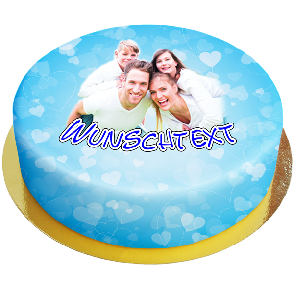 Stelle deine Fototorte nach eigenem Geschmack zusammen und lade direkt dein gewünschtes Foto oder Logo dazu hoch.